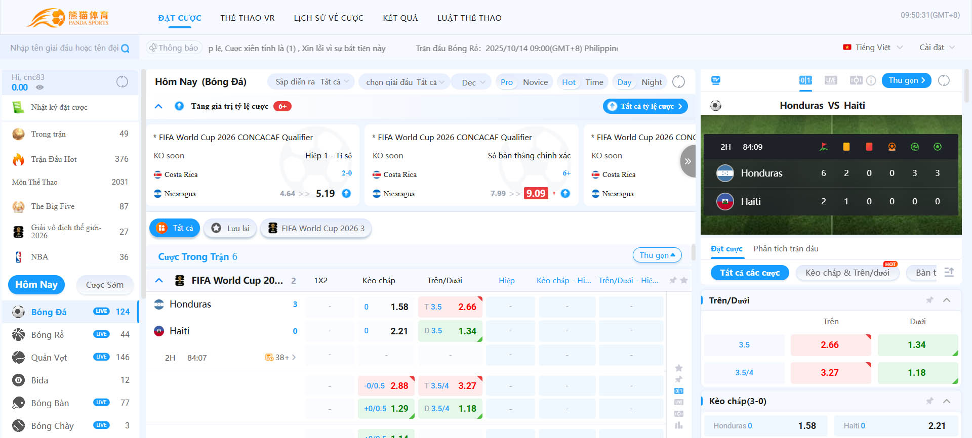 • Tỷ lệ cạnh tranh: Panda Sports thường xuyên điều chỉnh odds theo diễn biến trận đấu thực, tạo cơ hội cho người chơi “bắt kèo ngược” sinh lời cao.